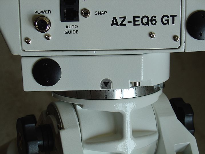 Wie in den Texten zu den Bildern zu lesen ist, kann die Montierung nicht einfach in der Polhöhe von 0° bis 90° durch geschwenkt werden. Für den AZ Betrieb ist ein kleiner Umbau notwendig. Aber kaum der Rede wert. Das sei der Vollständigkeit halber erwähnt. Die Polhöheneinstellung geht nun wirklich gut, speziell die Feineinstellung bei der Poljustierung ist deutlich einfacher und sehr feinfühlig zu erledigen als bei der NEQ6 Pro. Die letzte Bewegung beim Feinjustieren sollte immer die Polachse anheben, damit nimmt man Spiel aus der Mechanik raus.
