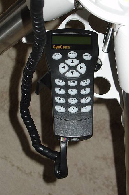 Die Synscan Handsteuerbox. Natürlich ist in dieser Version der Achs-Encoder Support enthalten sowie der EQ und AZ Betriebsmodus. Neu: die Steuerung der Aufnahmesequenz von Astrofotos (über den Snap Port der Montierung)