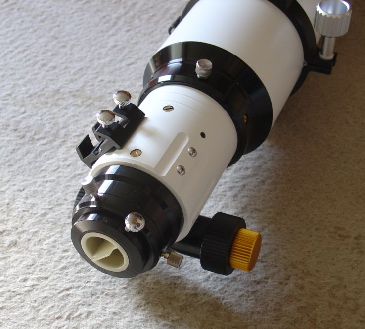 Die Taukappe wird offenbar über die Madenschrauben im Endring gebremst,eine Fixierung ist es ja nicht, hält durch ausreichend Reibung. Aus meiner Sicht eine bessere Lösung als eine einzelne Rändel-Klemmschraube, die ich bislang bei den Photoline und auch anderen Refraktoren vorgefunden habe