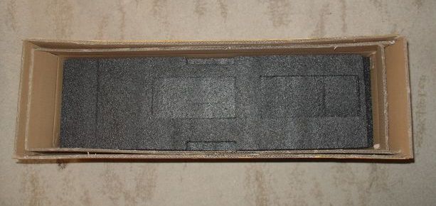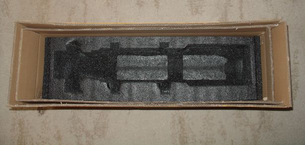 Wenn man den Karton öffnete, kam ein Koffer zum Vorschein. Nun, Überraschung, es kommt ein weiterer Karton zum Vorschein. Öffnet man diesen, findet man Hartschaum, die Abdeckung. Nimmt man diese heraus, liegt der 115/800 APO da, eingebettet in Hartschaum. Ok, im Koffer war auch nur Hartschaum, jetzt wurde der Koffer komplett eingespart.