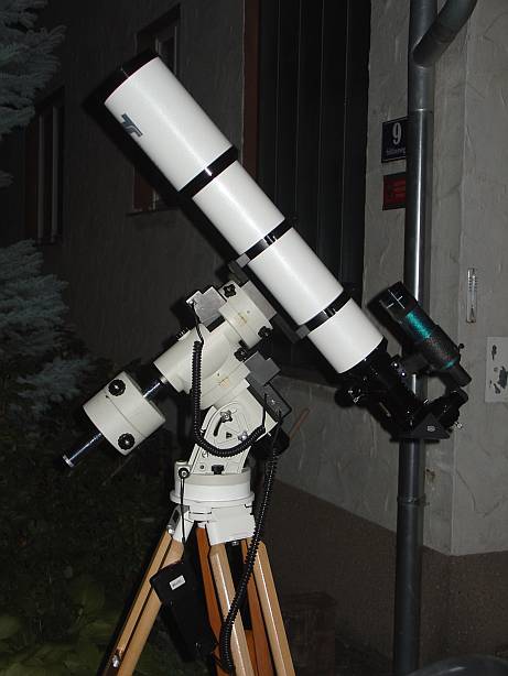 Der APO ist da, jetzt braucht es nur eine klare Nacht für einen Test. Da das Teleskop rein für visuelle Beobachtungen dienen soll, wurde es von mir auch in erster Linie dahingehend getestet. Die klare Nacht war nicht ganz so toll, mit 4.5 mag im Zenitraum halt ganz typisch für meinen Standort in Mistelbach. Bei durchwachsenem Wetter ist man froh über jede Gelegenheit, die sich bietet. Also raus Montierung aufbauen, Teleskop drauf, und erst einmal ein bisserl so rumspechteln, bevor es an einen Startest geht.
