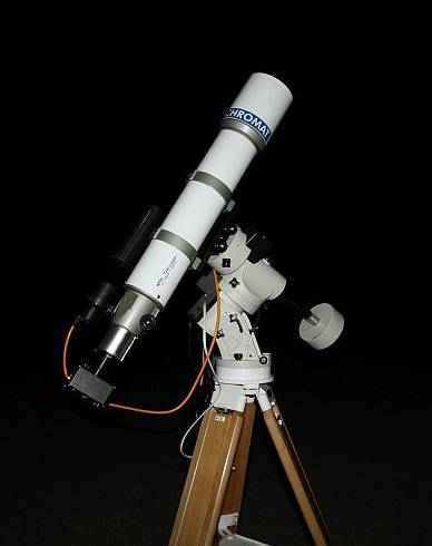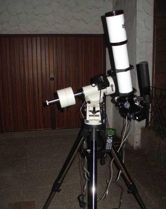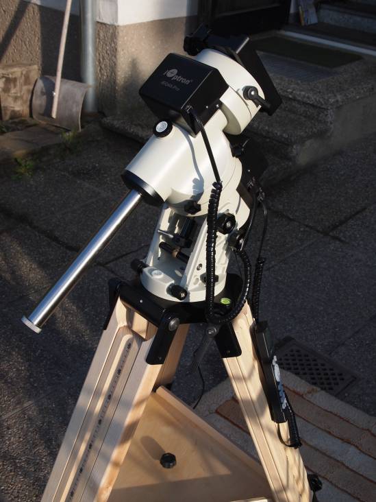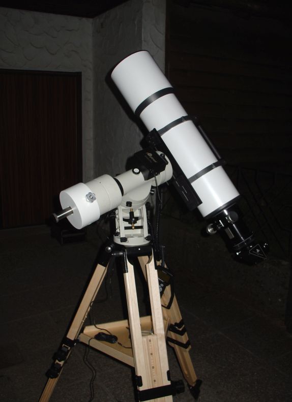 Die "Ur-Version" der ieq45, hier auf meinem Baader Holzstativ. Man erkennt sie an der Dec Klemme mit den vier Klemmschrauben, gleich wie in RA