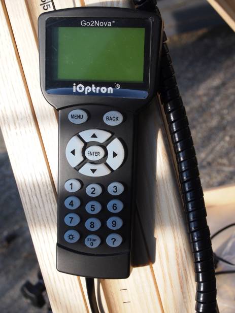 Eine wirkliche Verfeinerung kommt mit der aktuellen Ausbaustufe. Größeres RA Schneckenrad und größere Schnecke, feiner verzahnt, was auch eine kürzere Schneckenperiode mit sich bringt (früher 400 Sekunden, jetzt 337,5 Sekunden). Zudem finden wir statt der bislang installierten Servo-Motoren nun Schrittmotoren - leiser beim Goto, keine Frage, laufruhig und nicht "energiehungriger" als die alten Servos. Der Tasten-Beep ist jetzt tiefer in der Frequenz und dadurch nicht mehr so lästig. Komplett abschaltbar sowieso, oder nur für Tastenbefehle abschaltbar, dann "beept" es nur nach Ende des Goto Vorgangs. Das Display der Handbox ist beheizbar, das war allerdings auch in der Erstversion der ieq45 so, und ja, ich hab's abgeschaltet und nie gebraucht. Ein paar neue Dinge gibt es in der Steuerung: Zero Position hat nun eine "Set" und ein "Go to" Feature. Das "Set Zero Posiotion" hat mich erstmal gewundert - dazu noch später.