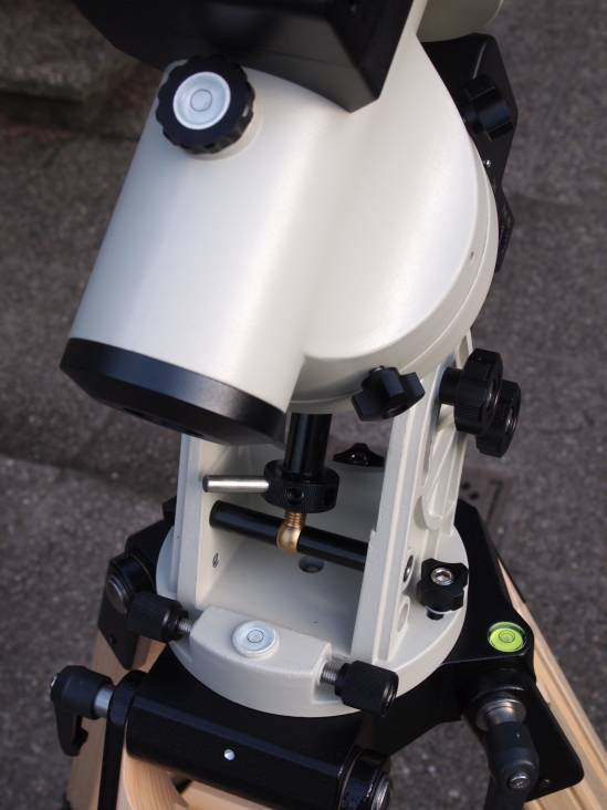 Der Libelle des Berlebach Stativs darf man vertrauen. Kein Zufall, das war bei jedem noch so, und ich habe schon etliche dieser Stative in der Hand gehabt. Großer Vorteil, man kann das Stativ schon vor dem Aufsetzen der Montierung gut nivellieren. Die Libelle des Test Exemplars der ieq45 passt auch, sie ist aber viel sensibler. D.h. eine kleine Änderung wird durch eine stärkere Abweichung der Luftblase angezeigt. Man kann so gegebenenfalls nachbessern. Eines bringt ein gutes Holzstativ auf jeden Fall: Die Nivellierung lässt sich viel besser und genauer durchführen als bei den üblichen Stahlrohrstativen. Es geht einfach feinfühliger, und gezielter, kein Gefummel.