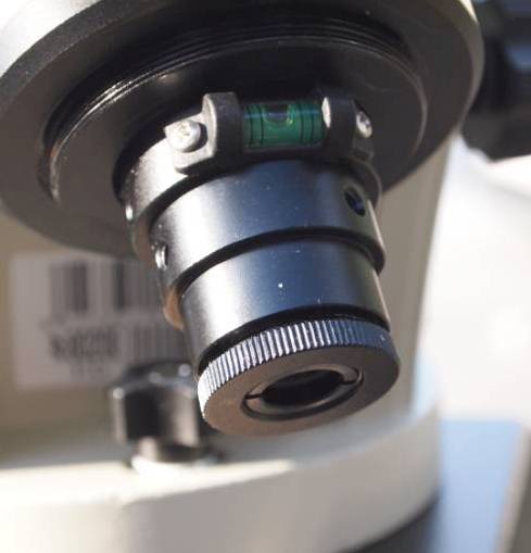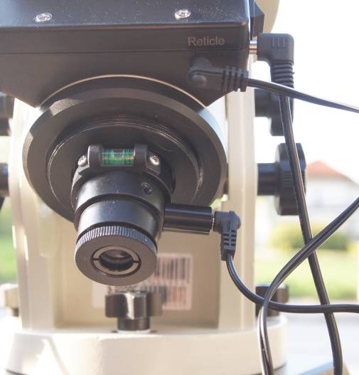 Links sieht man die eingeschraubte Polsucherbeleuchtung, rechts die Verkabelung mit der "Reticle" Buchse. Dies ist eine deutliche Verbesserung gegen frühere Versionen, bei der das Kabel fix mit der Beleuchtungseinheit verbunden war.