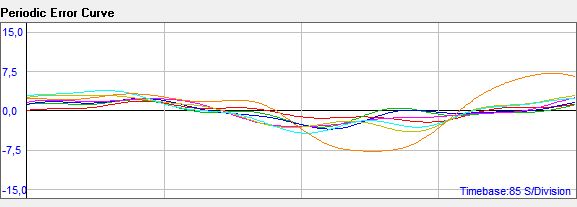 Hier nochmals die PE Kurven der 7 Schneckenumläufe, etwas gedehnter dargestellt. Damit sollte ein Autoguider auch kein Problem haben.
